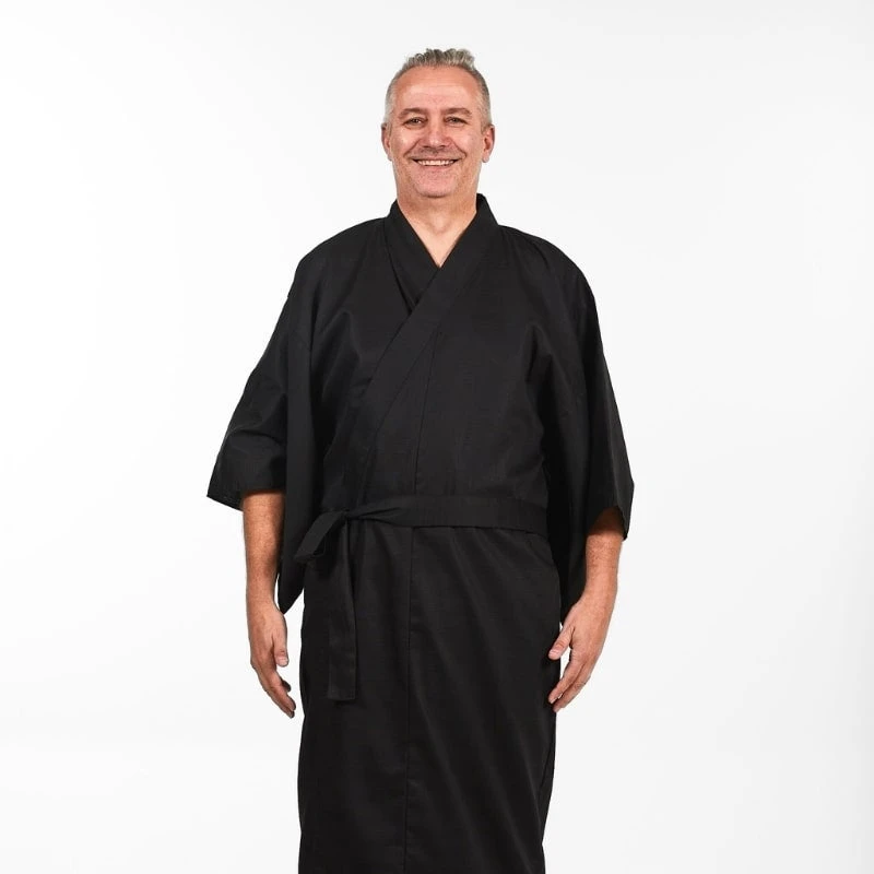 This Men’s Japanese Kimono Black exemplifies the pure, minimalist elegance inherent in Japanese design. Crafted in Kyoto from premium shantung cotton, it features a subtle, refined texture that adds depth and character to this timeless garment. Its loose fit and matching belt ensure maximum comfort, making it ideal for relaxing moments at home. This black kimono is an essential piece for anyone who appreciates the simplicity and understated beauty of traditional Japanese fashion.