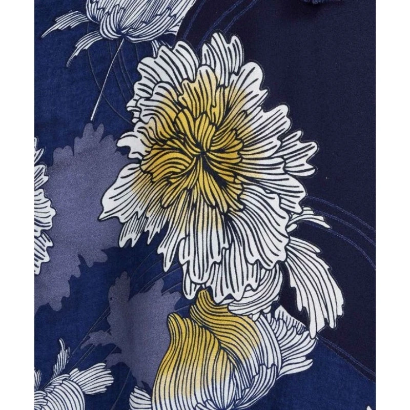 This Japanese kimono dress is an elegant choice for just about any occasion. With its delicate floral print, cross-over kimono collar, and long, wide sleeves, it offers modern style while staying true to Japanese tradition. The adjustable waist with drawstring allows a perfect fit. Accessorized with an obi belt, this dress will give you the impression of wearing a kimono.