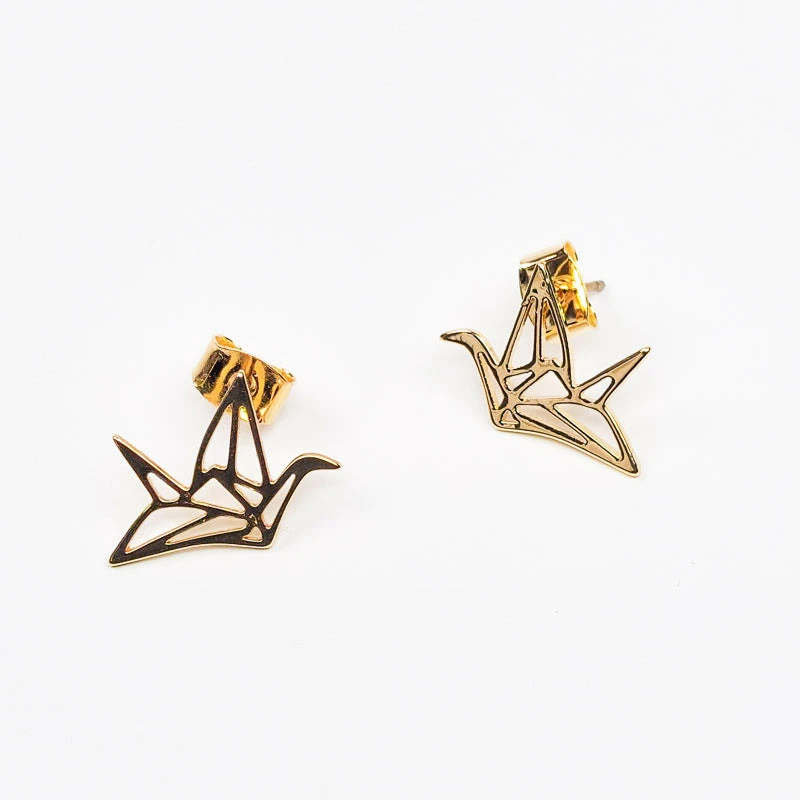These origami crane earrings are as discreet as they are elegant. With their golden color, they perfectly dress the earlobe. Beautiful modern Japanese jewelry to wear on a daily basis.