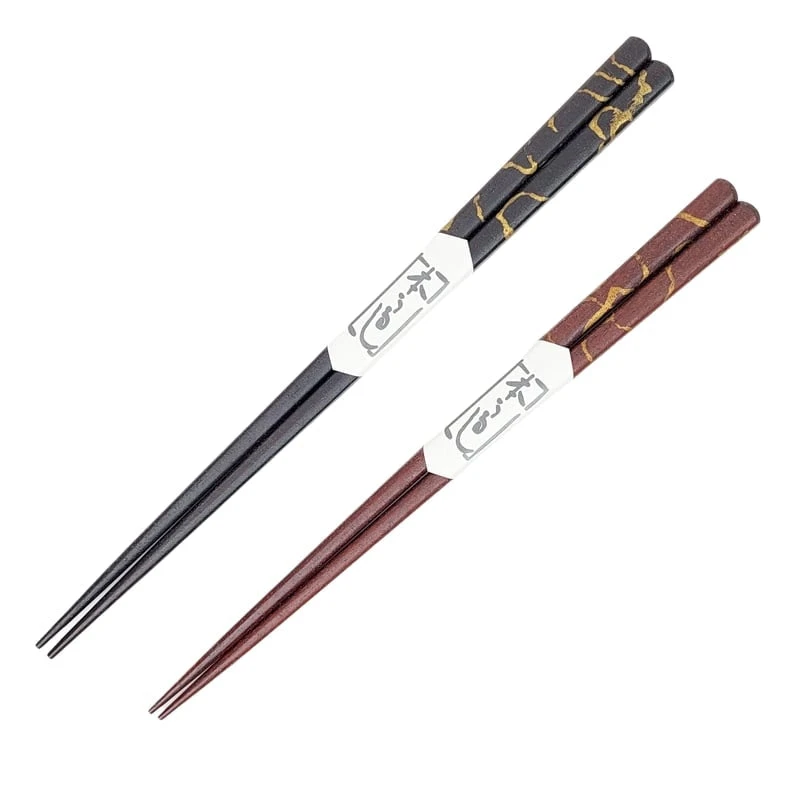 Set of 2 Pairs of Japanese Chopsticks in Lacquered Ebony Wood