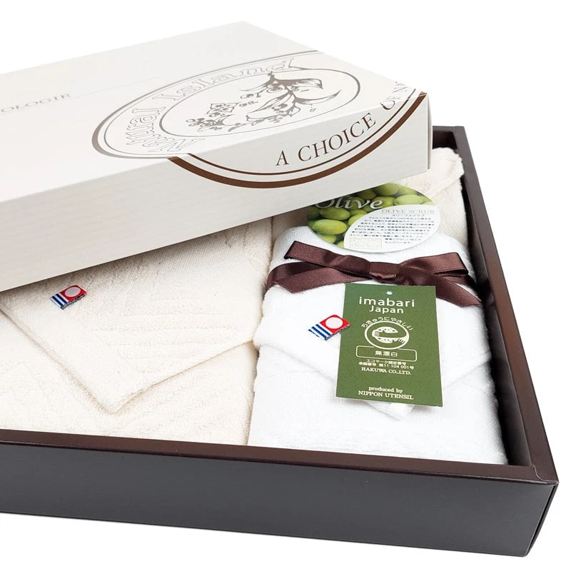 Indulge in a moment of well-being with this elegant box containing three high-quality Imabari Japanese towels: a bath towel, a face towel, and a hand towel. Certified by Imabari Towel Japan and woven in the renowned town of Imabari, famous for its exceptional towels, these 100% cotton pieces offer unmatched softness and quick absorption.
