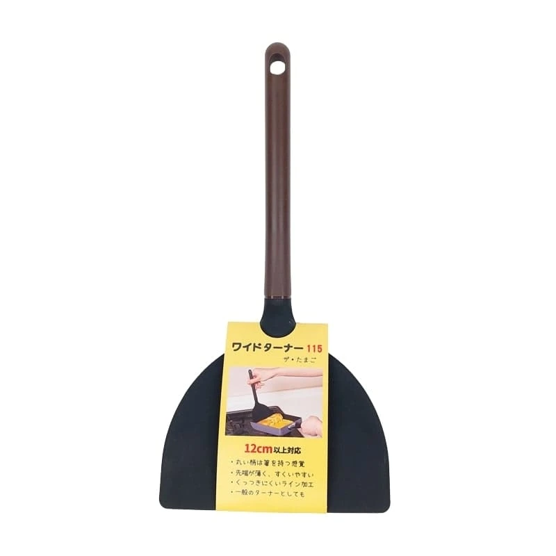 This large spatula is specially designed for the easy turning of Japanese omelettes (tamagoyaki) and other delicate dishes. Its flat surface allows for precise handling without breaking the food, making it ideal for the rectangular pans commonly used in Japanese cooking.