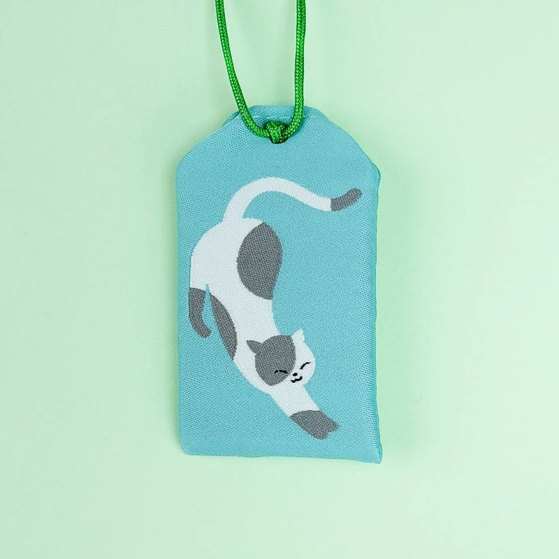 The omamori is a Japanese protective talisman. A small cloth bag containing a prayer or an invocation for good luck, health or success. Each area of life has its own dedicated omamori. Adorable with its stretching cat, this omamori wishes you good health and to be able to “eat without getting fat”.