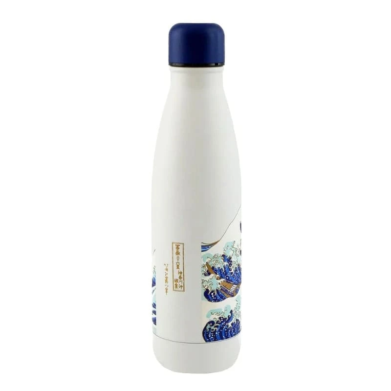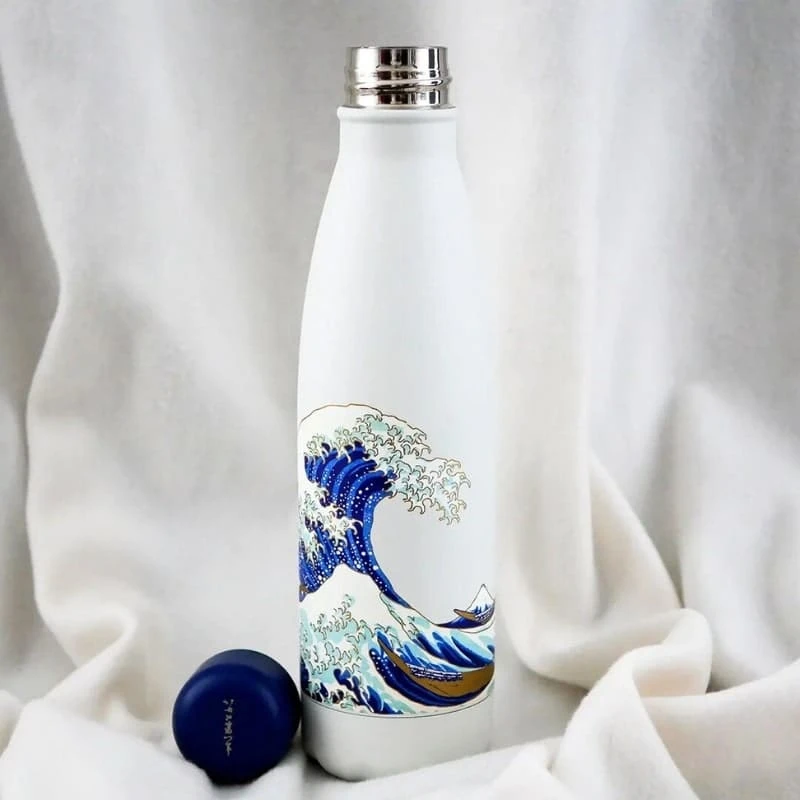 Hokusai’s art, always within reach! This 500 ml / 17 oz insulated bottle, featuring the iconic The Great Wave off Kanagawa, keeps your drinks hot or cold for up to 15 hours. Made from high-quality stainless steel, it is hermetically sealed, BPA-free, and highly durable. Its sleek and elegant design makes it the perfect companion for the office, workouts, or travel. Stay hydrated in style!