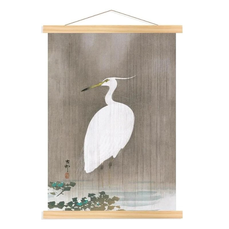 This Japanese artwork is perfect to add a Japanese touch to your home. Soothing, it represents a white egret under the rain, symbol of good omen. Slipped under a frame or hung with a wooden poster holder, this Japanese decoration will look great on the wall of your living room, office or bedroom.