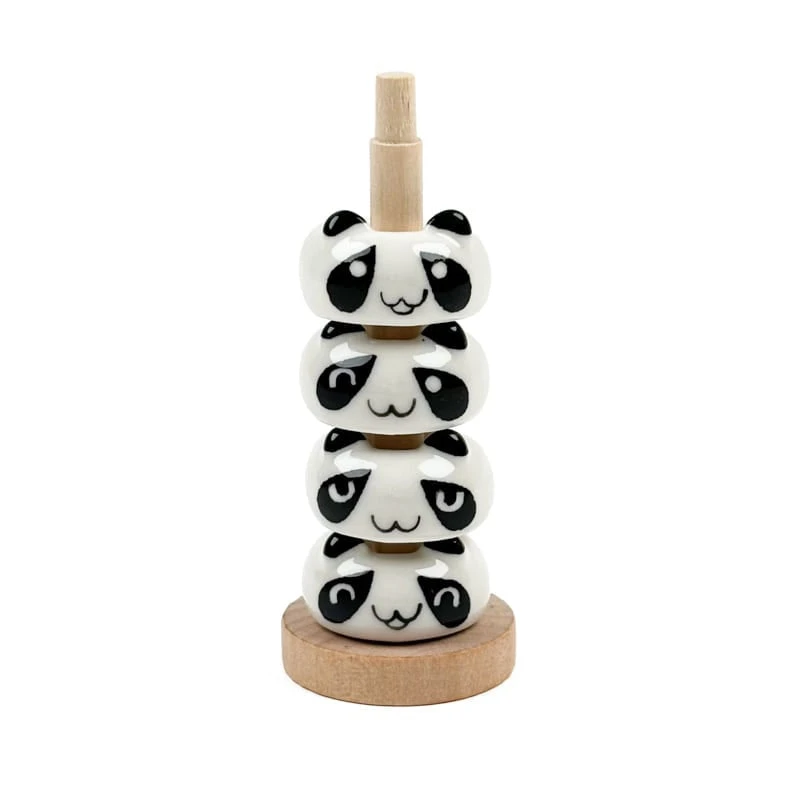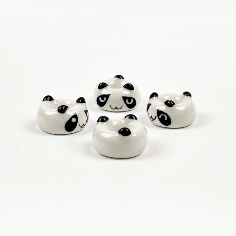 Enhance your daily routine with these adorable panda-shaped chopstick rests! Perfect for adding a kawaii flair to your sushi parties, these four charming doughnut-shaped pandas are sure to delight. Conveniently stackable on a wooden stand for easy storage, they can also serve as cute decorations for your worktop when not in use.