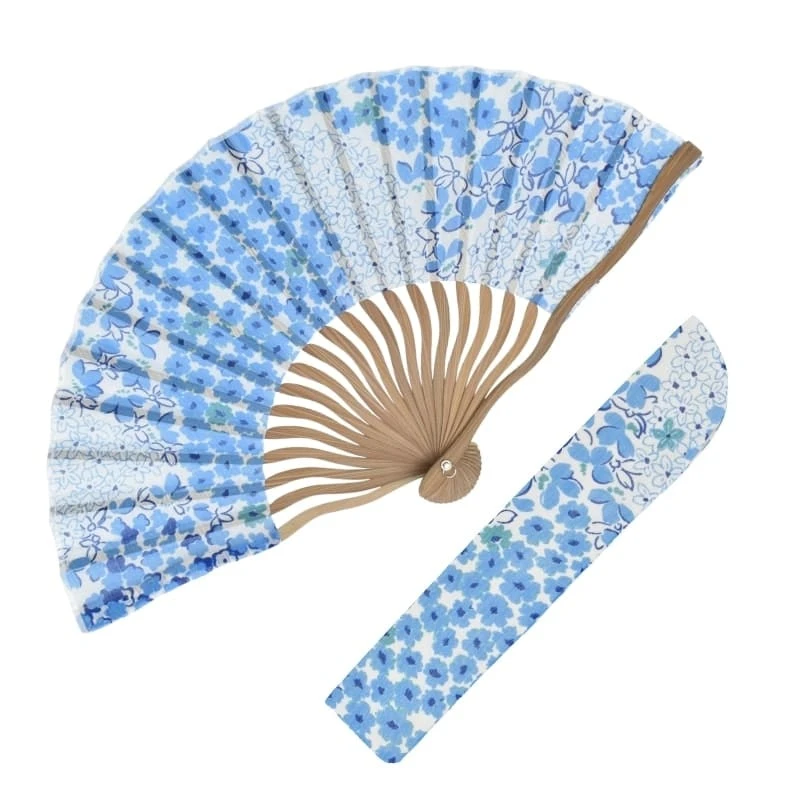 The Japanese Fan & Pouch – Blue Flowers is a celebration of freshness and lightness. Featuring a soft cotton fabric adorned with delicate flowers in calming shades, it opens into a graceful shape thanks to its wavy frame. Delivered in a beautiful box with a matching pouch, made in Japan, this refined set combines charm and practicality—perfect for stylish summer days or as a thoughtful gift.