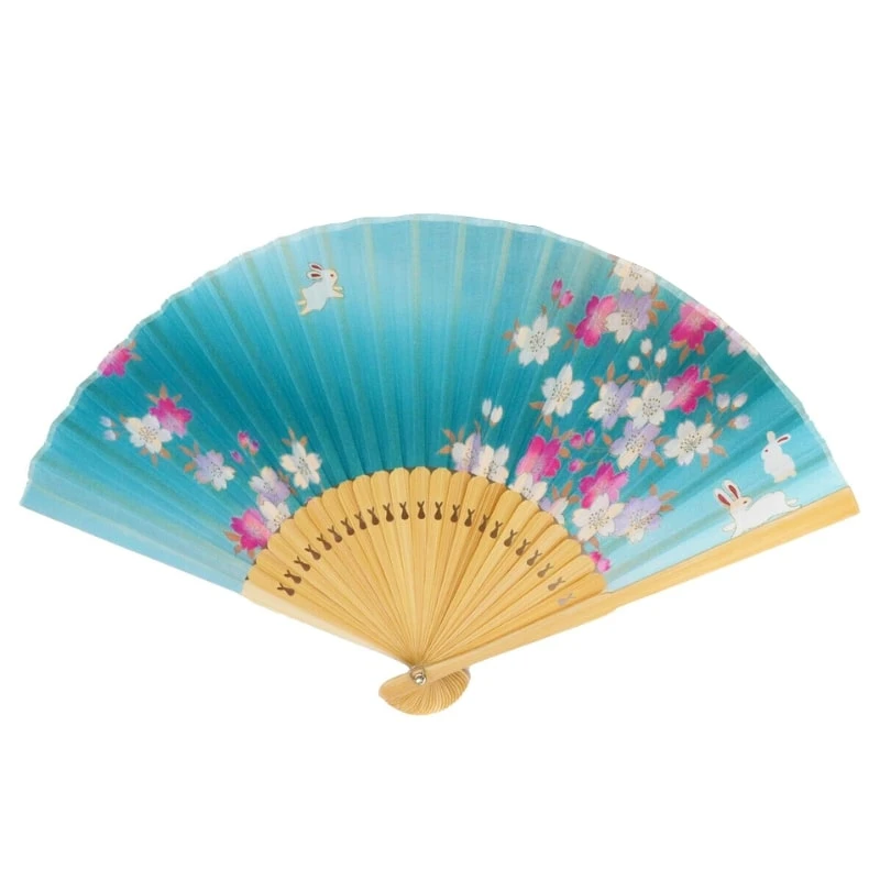 The Japanese Fan – Usagi Turquoise features delicate cherry blossoms and playful rabbits set against a calming turquoise background. Inspired by the charm of Japanese springtime, this cotton fan brings a poetic touch to everyday life. Colorful, compact, and easy to carry, it’s a practical and charming accessory for warm days or as a thoughtful gift.