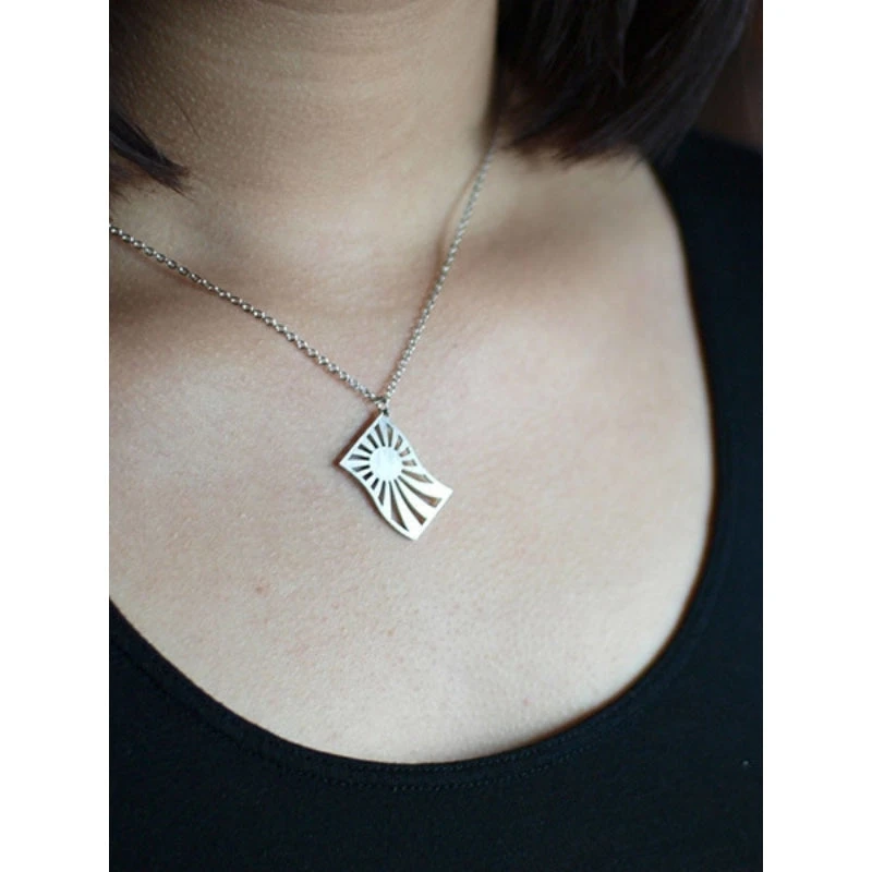 Affirm your passion for the Land of the Rising Sun with class and elegance by wearing this Japanese necklace. Made of stainless steel, the pendant represents the flag of the Japanese Navy, with an offset sun surrounded by 16 rays. Suitable for both men and women.
