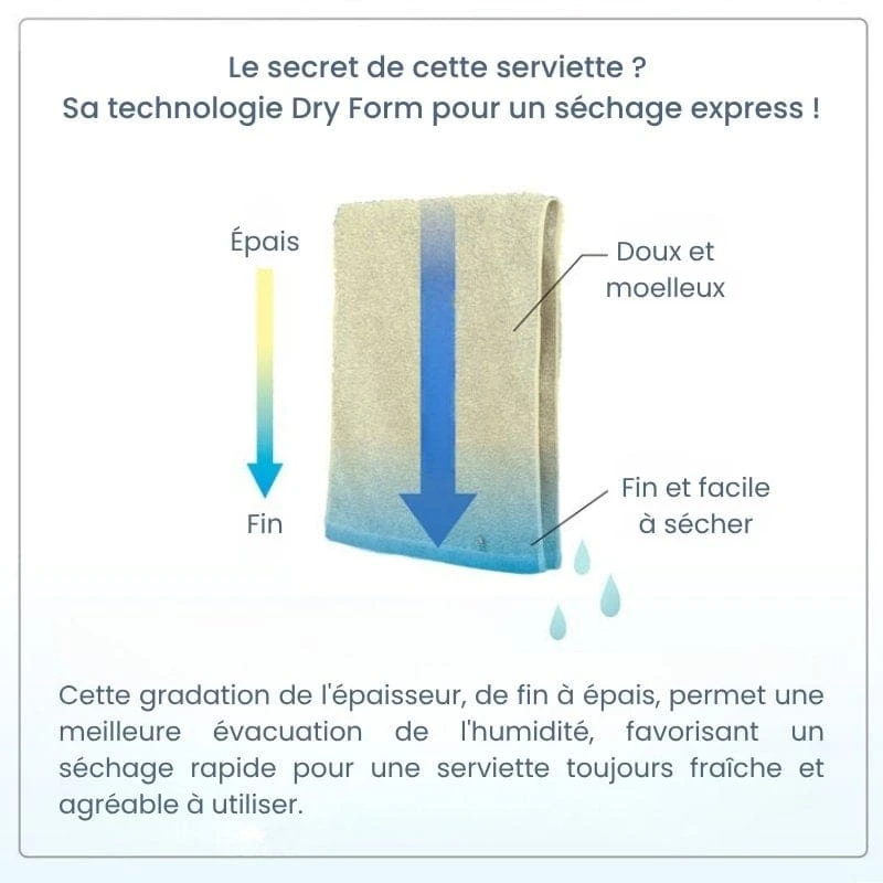 Experience premium comfort with the Imabari Quick-Dry bath towel (70 x 130 cm / 27.6 x 51.2 in), crafted in Japan using exceptional craftsmanship. Thanks to its Dry Form technology, it dries faster than conventional towels while maintaining outstanding absorbency. Its innovative weave allows moisture to disperse quickly, preventing water buildup and leaving the fabric light and fresh. Wrap yourself in softness after every shower—for a moment of pure well-being.