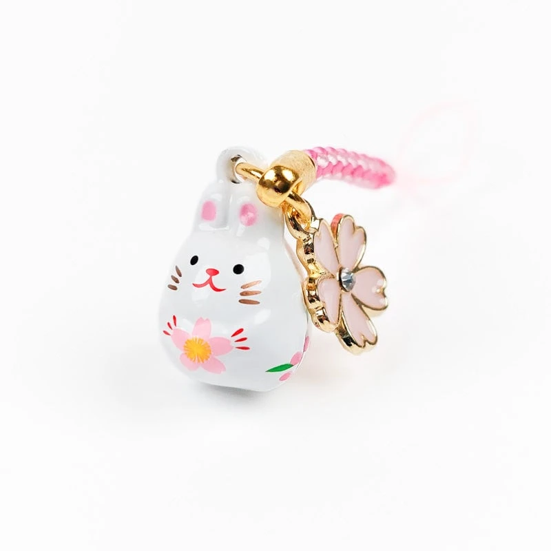 This charming key chain, featuring a white rabbit and a sakura flower bell, adds a touch of kawaii to your keys or phone. The rabbit, a symbol of good fortune, is accompanied by a delicate sakura flower, reminding you to cherish life’s small joys. It makes a perfect gift to show appreciation and friendship.