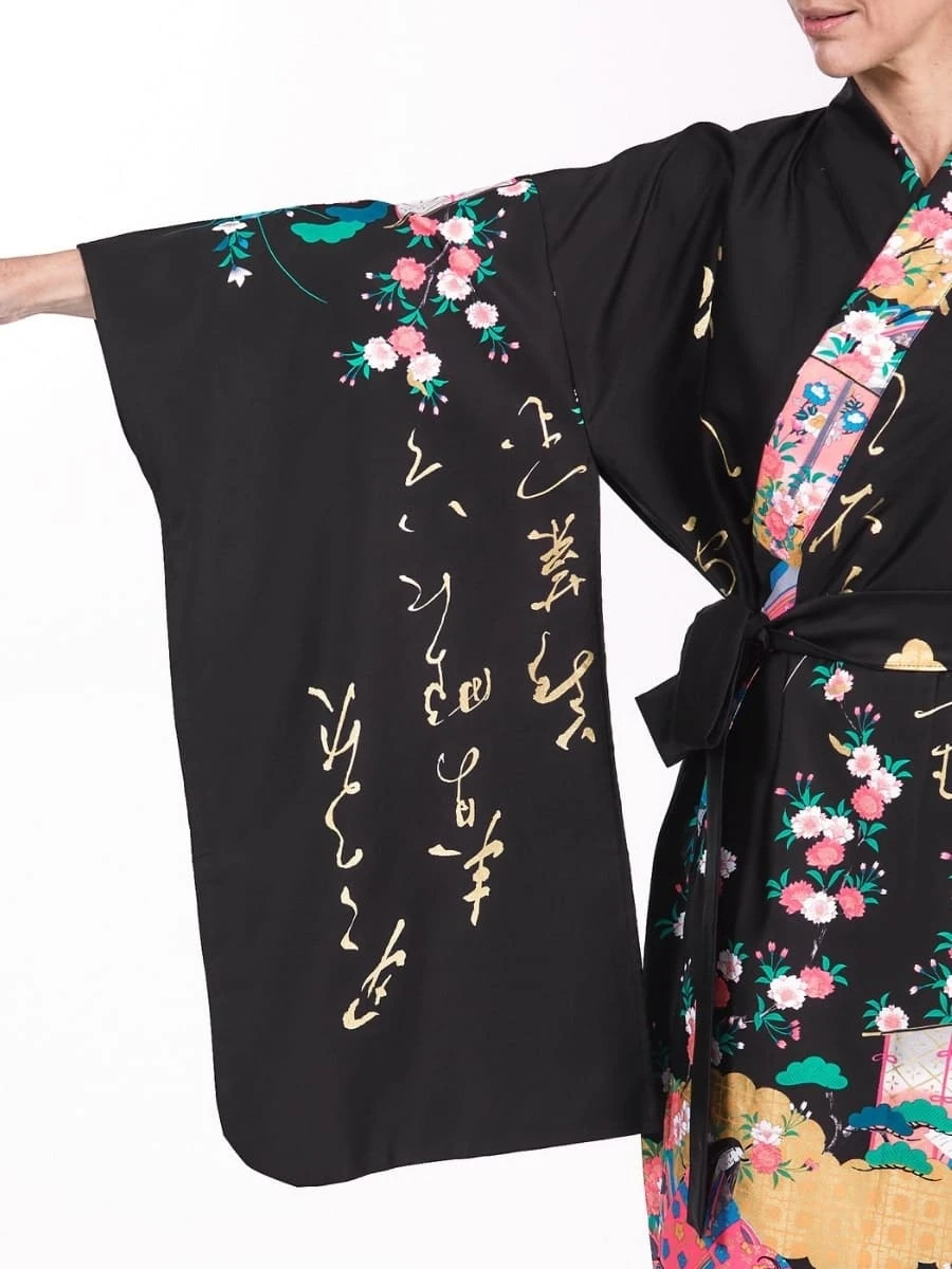 Note: The belt is sewn into the sleeve of the kimono for convenient storage.