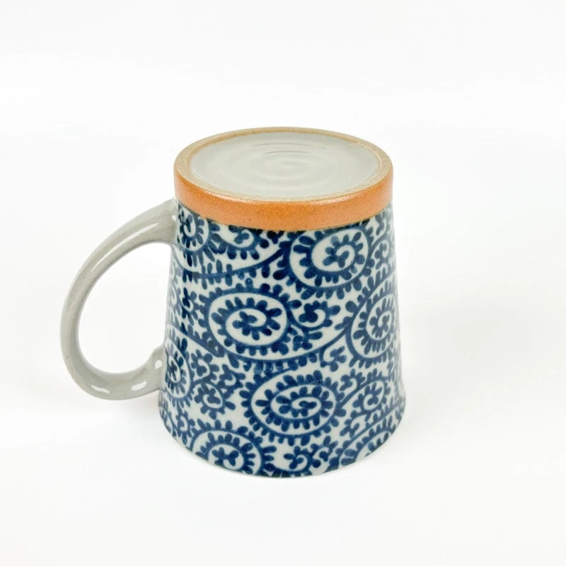 A pretty Japanese mug with handle for drinking coffee or tea. The ceramic is decorated with a blue karakusa motif. Inspired by plant growth, this traditional motif symbolizes prosperity and eternity. This Japanese mug is also available in red, making it the perfect gift for a couple.