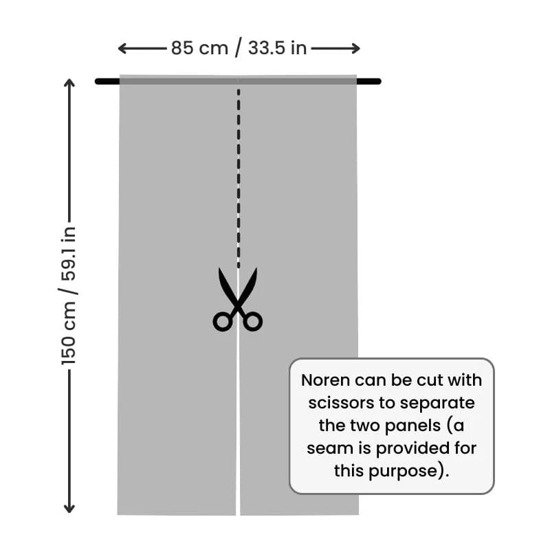 To separate the two sides of your noren, take a pair of scissors and cut the dotted line down the center of the noren. This will prevent the noren from fraying. You can then choose the opening height of your noren.