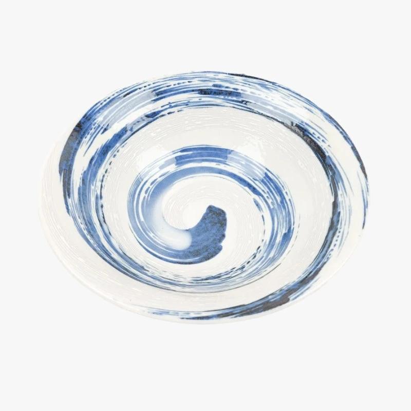 The white ceramic of this large Japanese bowl is decorated with an enso pattern which is a circle drawn with a brush stroke. This Zen circle originating from Buddhism finds its meaning in wabi-sabi, a Japanese concept according to which beauty lies in the imperfection of things.