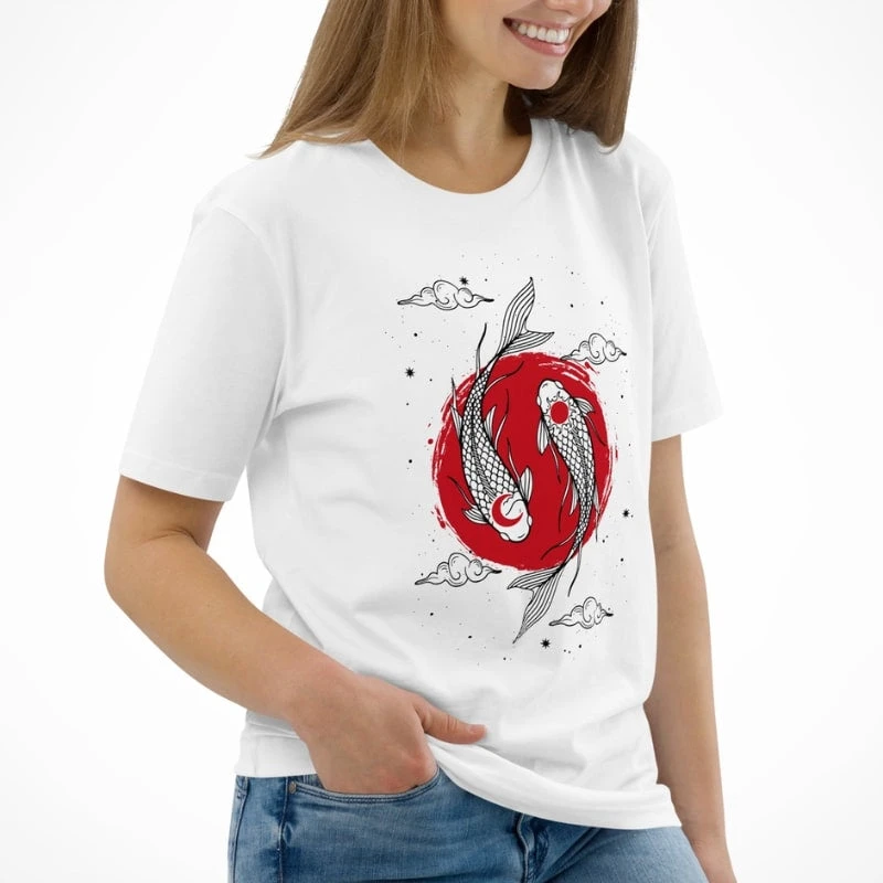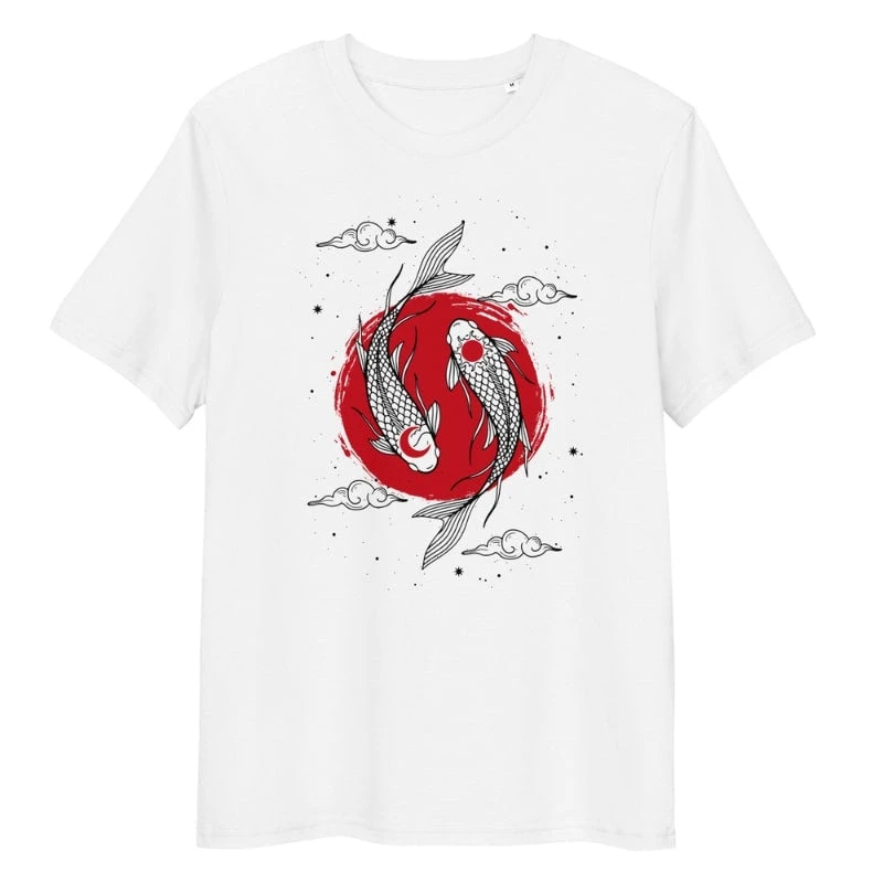 Unisex Japanese T-Shirt in Organic Cotton with Duo of Koi Carp design