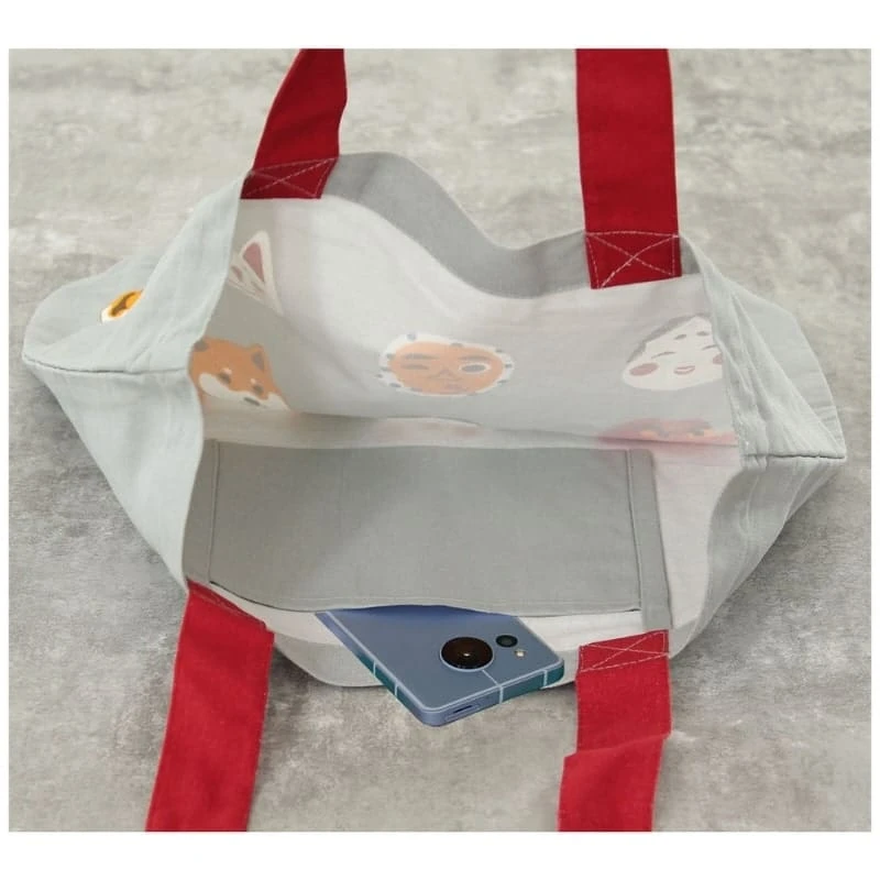 Featuring traditional Japanese masks and a cheerful shiba with a mischievous grin, this grey tote bag blends humor and cultural charm. Made in Japan from durable cotton, it’s roomy enough for your A4-size essentials—perfect for errands, classes or strolls.