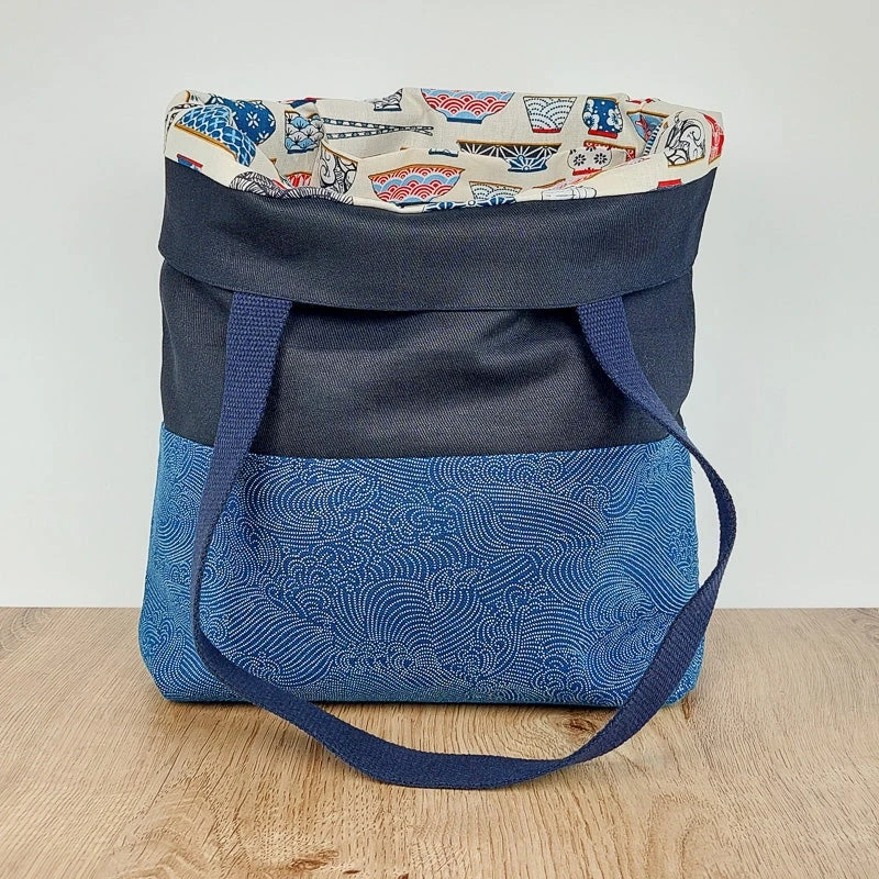 The Japanese fabric sewn at the base of the bag is decorated with the nami pattern. This print represents the waves of the sea, symbolizing the forces of nature.