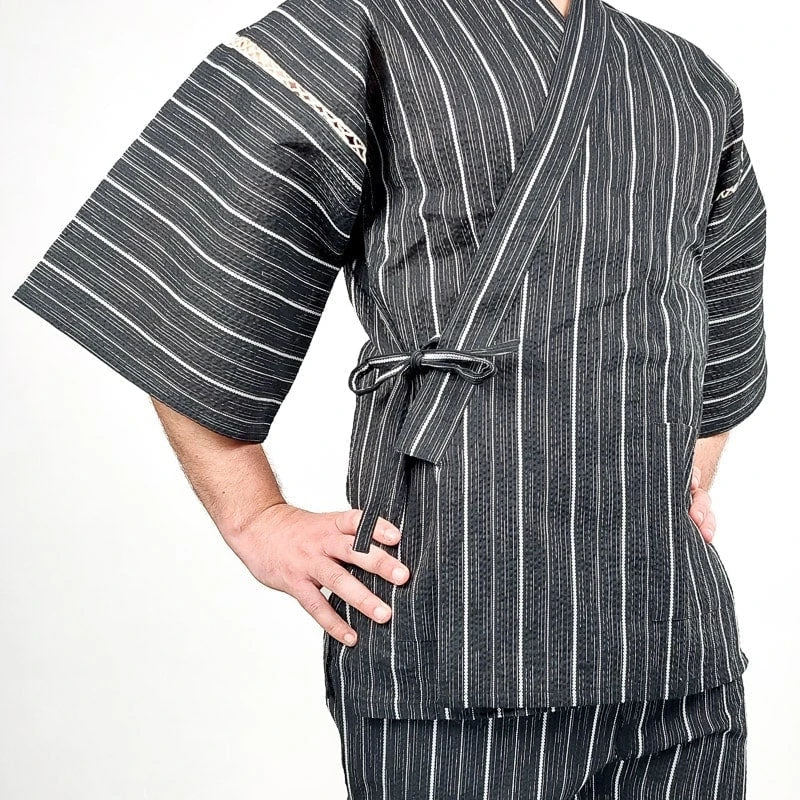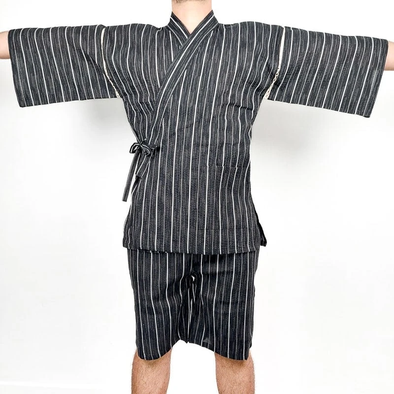 Traditional Japanese jinbei clothing can be worn outside in summer or at home in winter. A casual garment par excellence, the jinbei is made up of a jacket to tie and shorts. The breathable cotton fabric is extremely comfortable to wear, even on a hot summer’s day. Adopt a Japanese look with this traditional garment!