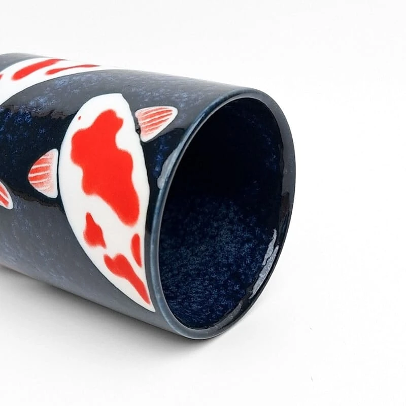Japanese Handleless Porcelain Mug with Koi Fish Design