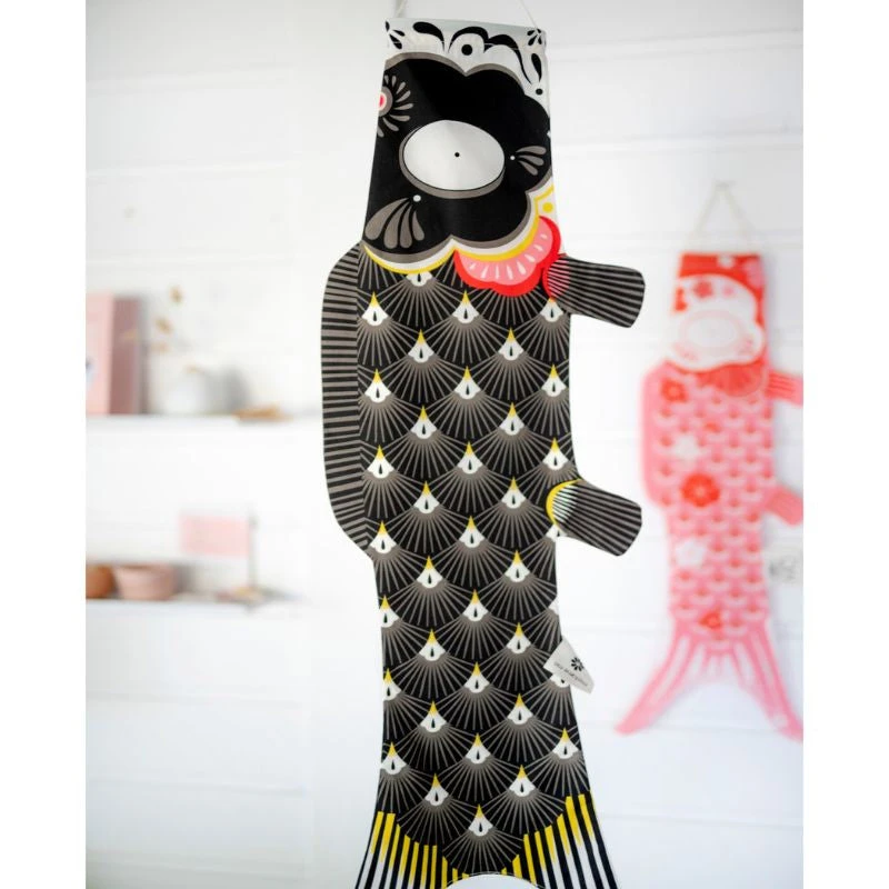 Koinobori windsock air handle in the form of a koi fish with Traditional Black design