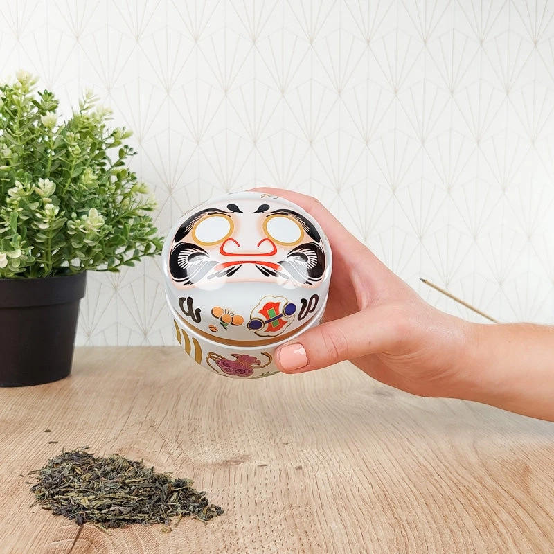 Lovers of Japanese culture will love this tin tea box that can be used as a true Daruma. Decide on a goal to achieve and stick a black dot on the inside of one eye of the Daruma to seal your commitment. Once you have reached your goal, you can glue the other pad and thus restore the sight of this Japanese figurine.
