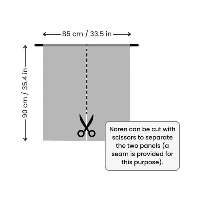 To separate the two sides of your noren, simply use a pair of scissors to cut along the dotted line down the center. This will prevent fraying and allow you to customize the opening height of your noren.