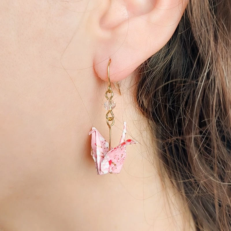 Delicate and feminine, these pink origami crane earrings add a romantic touch to your outfit. Hand-folded from Japanese paper and as light as a feather, they bring a unique flair to your style! Fall in love with these exceptional earrings, a symbol of Japanese craftsmanship.