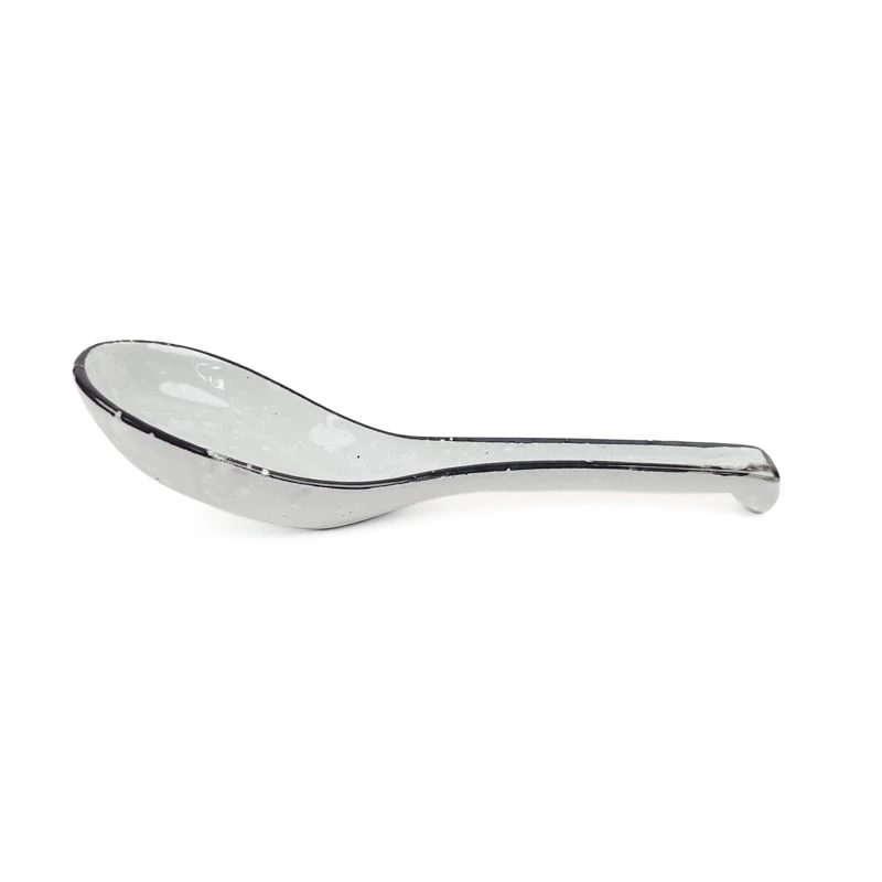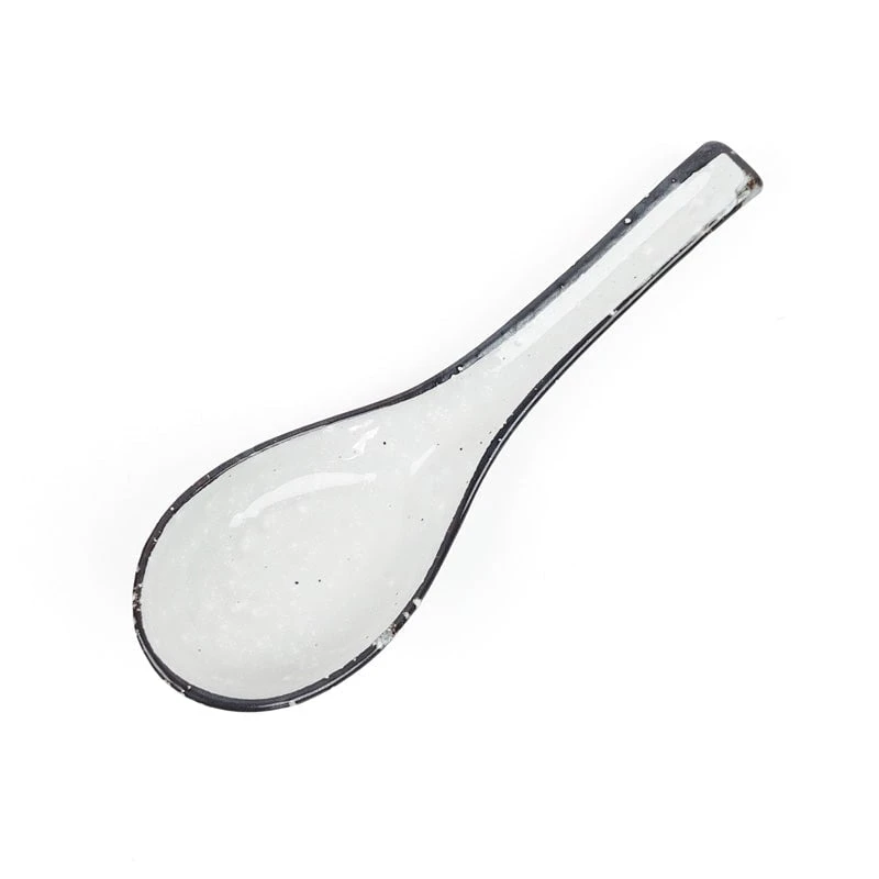 As elegant as it is practical, this Japanese ramen spoon will bring softness and authenticity to your table. We love the hand-crafted look of its enamel, with the black border highlighting the sleek design of this porcelain spoon. Perfect for ramen and other Japanese noodle soups!