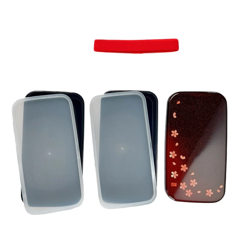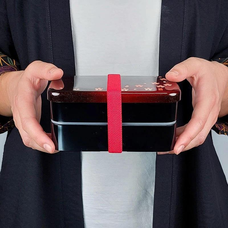 This Japanese bento box is composed of two stackable compartments, both equipped with a hermetic lid. An elastic band is provided to secure your bento.