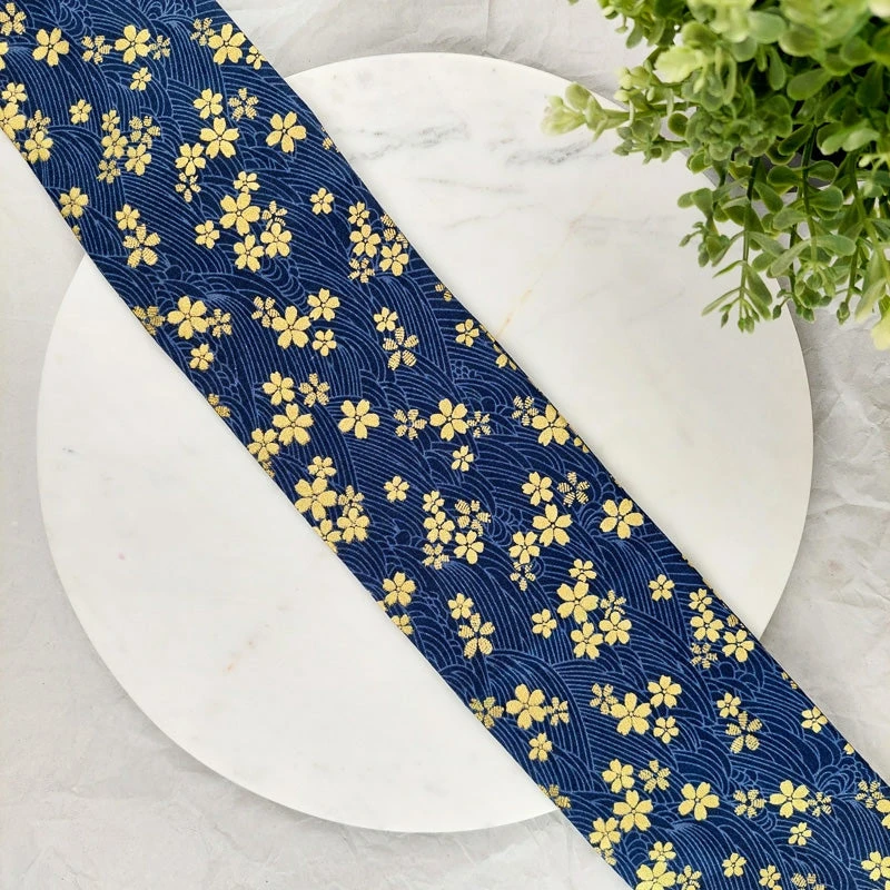 For a chic and elegant look in no time, accessorize your casual outfits with this beautiful Sakura obi and its golden sakura flower pattern. Extremely easy to wear, simply place it at waist level, more or less high depending on your body type, and tie it with a pretty bow tie on the front or a loose bow tie on the side.