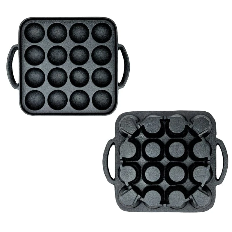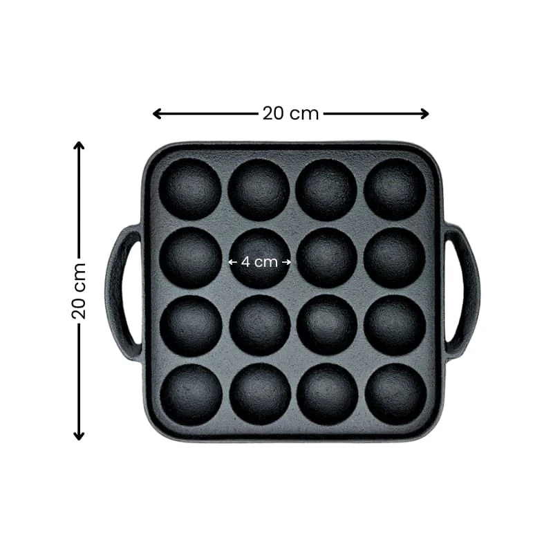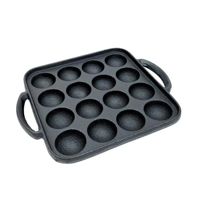 This sturdy pan features 16 round molds, allowing you to prepare multiple takoyaki at once. Made of high-quality cast iron, it retains heat exceptionally well for optimal cooking. Its side handles provide a secure grip for easy handling. Whether for fun cooking nights or shared meals, this pan is a must-have in your kitchen!