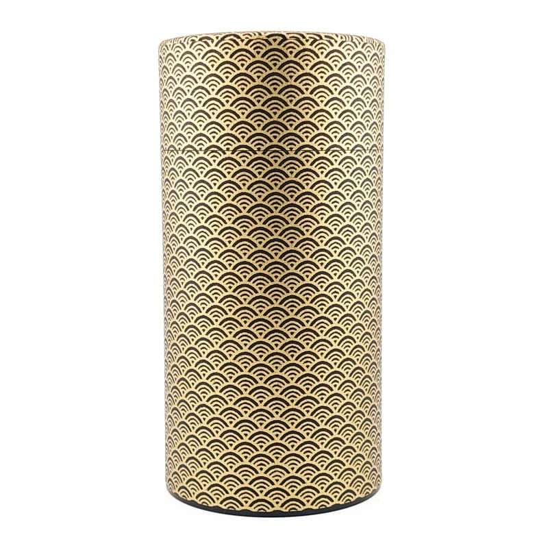 Embellished with the Seigaiha motif, representing stylized waves, this Japanese washi tea canister symbolizes peace and good fortune. The golden wave pattern on a black background gives it a traditional yet refined style. Crafted from high-quality washi paper, renowned for its strength and unique texture, itβs ideal for storing tea, coffee, or sugar while maintaining their freshness. A perfect gift for admirers of Japanese culture and timeless design.