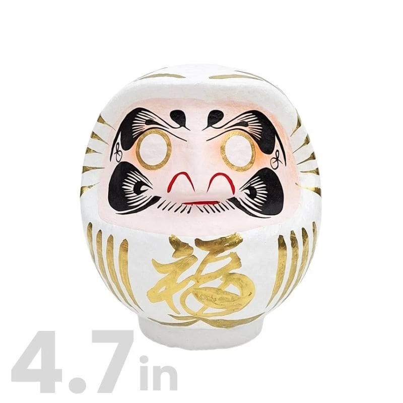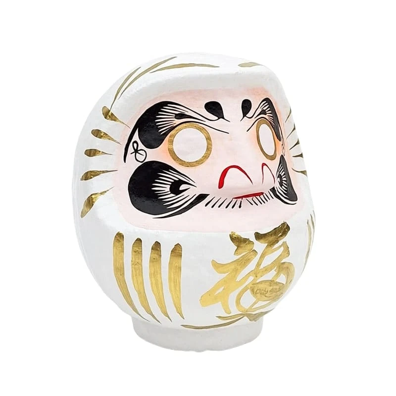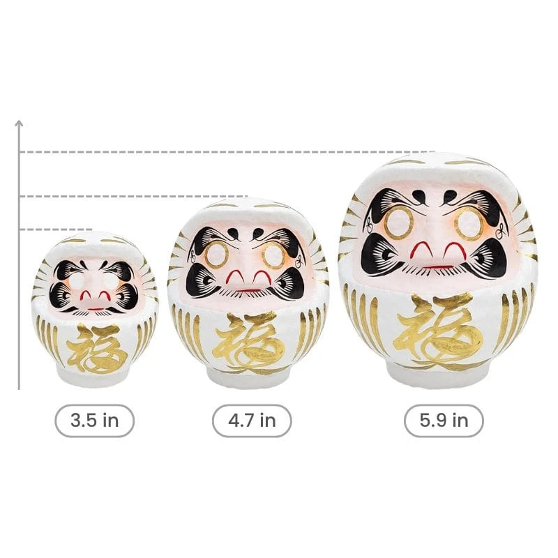 White Japanese Daruma, Hand-Painted – 9 to 15 cm / 3.5 to 5.9 in