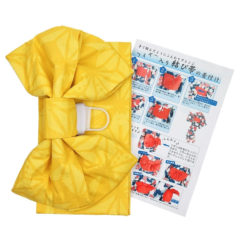 With its radiant yellow color and beautiful jacquard fabric, this traditional obi belt for women is the perfect complement to your Japanese outfit. Tying an obi belt is quite an art. So, to make this Japanese accessory accessible to as many people as possible, this model comes with a pre-tied bunko knot. To wear this obi belt (also known as tsuke obi), simply tie the belt around the waist, then slip the knot behind the back. Instructions are included with the belt!